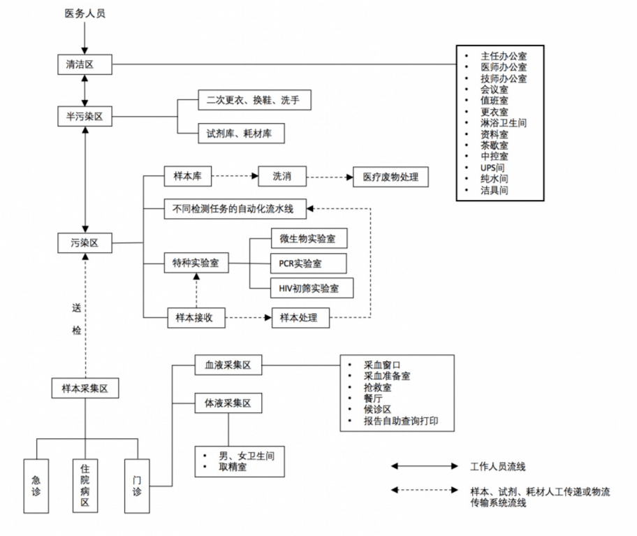 分析及梳理主要功能用房,包括样本采集区与工作区,分清洁区、缓冲区、污染区、生活区等功能区;